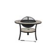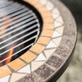 Модель изготовлена из прочной стали и керамики, по периметру который выложена мозайка из жаростойкого камня. Сама чаша поддерживается тремя стойками. В комплект также входит крышка искрогаситель и хромированная решетка гриль.
