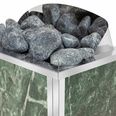 Нагревательный элемент - ТЭН, способствующий быстрому прогреву помещения и меньшему расходу электроэнергии. Сверхлегкий корпус из высокопрочной нержавеющей стали обличен в натуральный камень, что добавляет эстетичности внешнему виду печи и приобретает характер дизайнерского украшения парной.