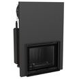 В подъемную дверцу вставлено стекло из жаропрочной стеклокерамики, через которое можно любоваться игрой живого пламени и следить за сгоранием дров.