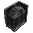 В распашную угловую дверцу слева вставлено Г-образное стекло из жаропрочной стеклокерамики, которое увеличивает обзор на игру пламени из-за отсутствия чугунной стойки. Каминная топка предназначена для установки в колонну, во внешний выступ перегородки или на специальный подиум.